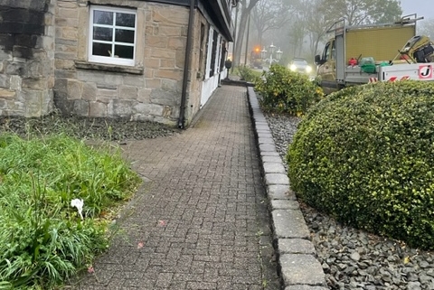 Der direkte weg vom Gegenüberliegenden Parkplatz zur Haustür ist aktuelle nicht nutzbar. Bitte nicht durch die Steinbeete abkürzen, Umknickgefahr !